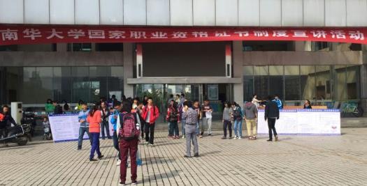 为大力推行国家职业资格证书制度,加快技能人才队伍建设,更好地服务我校学生就业和经济社会发展,贯彻执行湖南省人力资源和社会保障厅职业技能鉴定中心下发的《关于开展2015年国家职业资格证书制度宣讲活动的通知》(湘人社鉴函〔2015〕5号)文件,2015年10月11日上午继续教育学院在太阳成集团tyc第1教学楼前坪举办了国家职业资格证书制度宣讲活动。活动通过在校园布置宣传横幅、摆放展架、发放相关宣传资料、现场问卷调查方式进行,让学生更多的了解了国家职业资格制度。