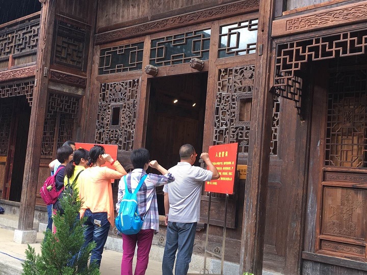 一行于中午抵达猴场镇,随即进入猴场会议会址区域进行参观学习。会址区域历史底蕴丰厚,有众多历史文化遗存,包括彪炳史册的中央政治局猴场会议会址、一代伟人毛泽东1934年12月31日参加猴场会议时居住过的地方——毛泽东行居、“长征五老”及红军三十女杰当年居住过的地方——红军干部团休养连旧址;开创贵州戏剧先河及全国第一部私家方志的黔中文化巨擘傅玉书故居等,展现了翁安县丰富的历史文化、红色文化。全体党员认真听取解说员的详细介绍,不时向解说员提出问题,深入了解革命的人文、自然背景,真切体会当时时局的艰难与共产党人的坚贞。
